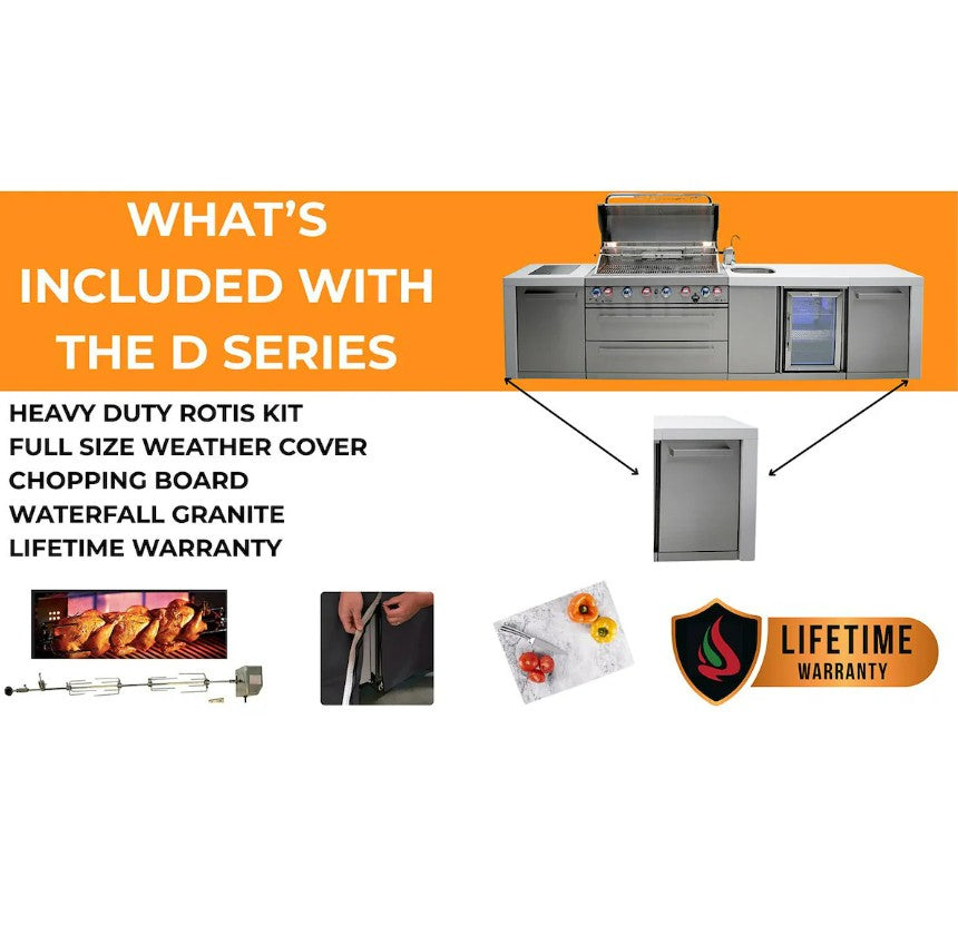 The Mont Alpi MAi400-D ships propane-ready and includes a natural gas conversion kit, giving you the flexibility to choose the fuel source that best suits your setup (installation required). Easy assembly and premium included accessories make this island an exceptional upgrade for any outdoor kitchen.